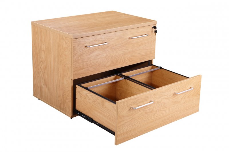2 Drawer Side Filing Office Cabinet. Size: W900 x D600 x H730. Available In 2 Finishes: American Black Walnut and Crown Cut Oak.